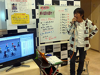 沢 朋之さんが来場し、当日の山陽オートGⅡライジングカップ4R以降のレース解説・予想を行い、各選手の調子・個性などをビギナーの皆様にもわかりやすく解説します。前回・6月に行った時は、予想の高的中率ぶりに、他競技ファンのお客様までもがオートレースコーナーに釘付けとなる一幕も!