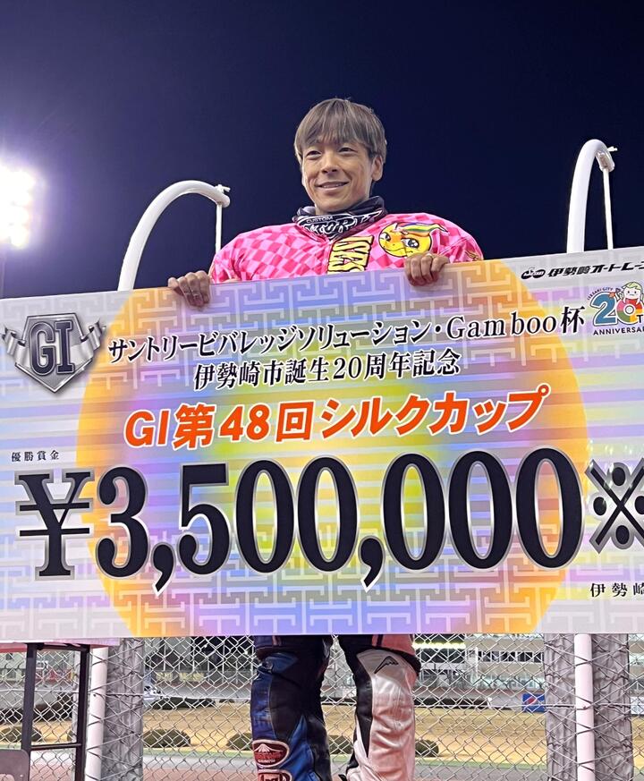 本日1/13、伊勢崎オートGⅠ第48回シルクカップ優勝戦おいて青山周平選手(伊勢崎:31期)が優勝し、GⅠ最多勝利記録29勝と同一GⅠ5連覇を達成しましたので、お知らせいたします。
