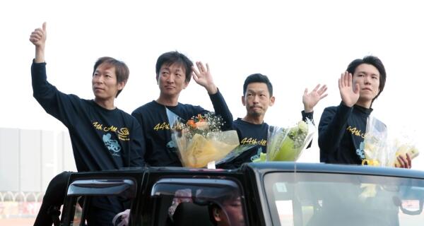優勝戦出場選手紹介式で場内を1周する、左から佐藤貴也、荒尾聡、中村雅人、鈴木圭一郎