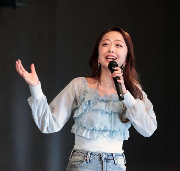みりちゃむがトークショーで笑顔を見せる