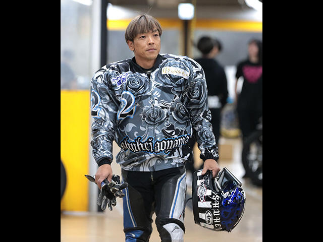 レースを終えた青山は、無念の表情でロッカーに引き揚げてきた。