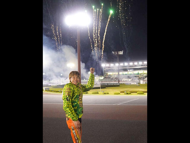 「自分はスタートがあまり早くないので、なかなか買いづらかったと思いますが買っていただいたお客さま、ありがとうございました。年末(スーパースター王座決定戦トライアル)に向けて、もっともっとスタート切れるように毎節、全力で頑張っていきます。今後ともたくさんの応援、よろしくお願いたします」と締め、詰めかけた伊勢崎のファンから多大な声援を受けていた。