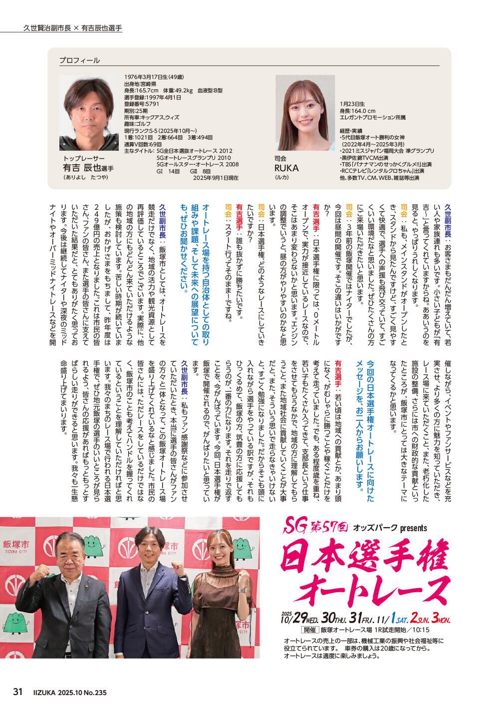 - 有吉選手と飯塚市副市長の対談が飯塚市の広報誌に掲載されました