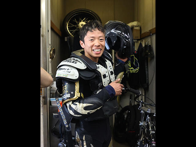 朝のスタート練習で落車。幸いにも車はひどい損傷ではなかったが、準決勝戦進出へ3日目予選6Rは1着条件。そこで見事に1着をもぎとった。
