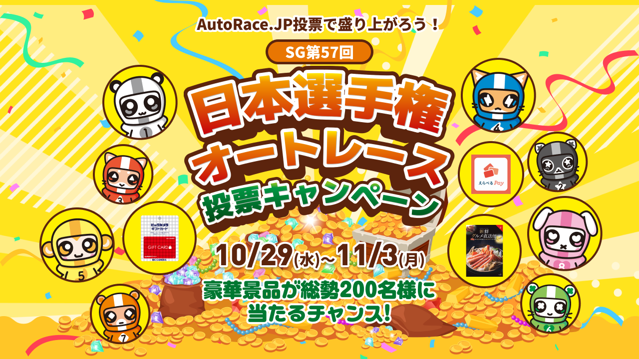 AutoRace.JP投票では、SG第57回日本選手権オートレース投票キャンペーンを開催します。