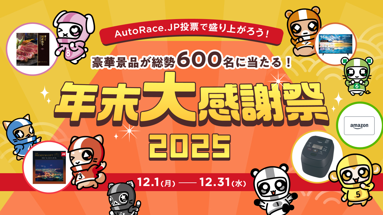 - AutoRace.JP投票で盛り上がろう! 豪華景品が総勢600名に当たる! 年末大感謝祭2025