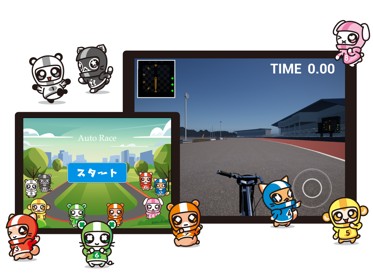 ブース内に設置されたオートレースゲームをプレイし、達成条件をクリアした方には、豪華オリジナルグッズをプレゼント!