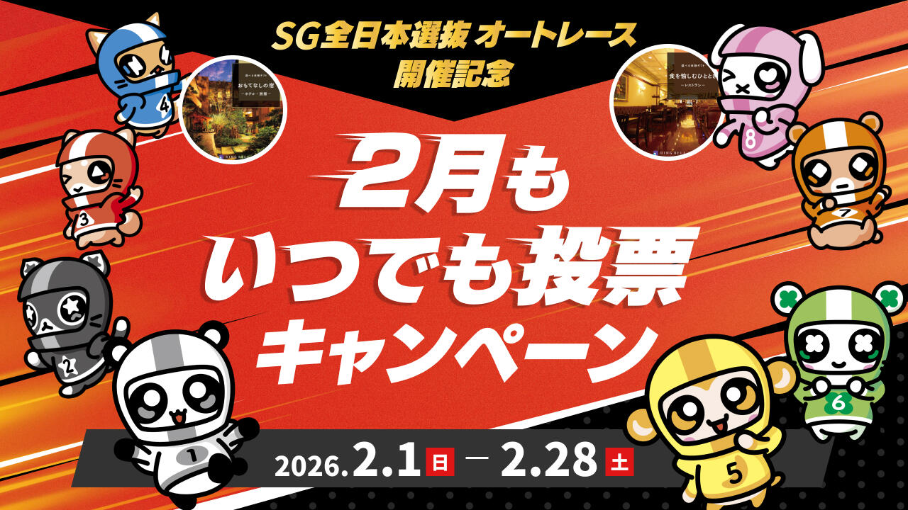 - SG全日本選抜オートレース開催記念「2月もいつでも投票キャンペーン」2026年2月1日(日)~28日(土)