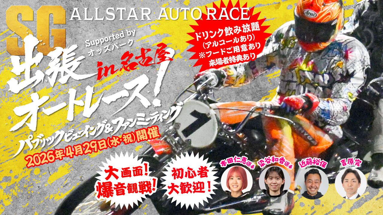 - 4/29(水・祝) 「出張オートレース! ~パブリックビューイング&ファンミーティング~ in 名古屋 Supported by オッズパーク」開催!